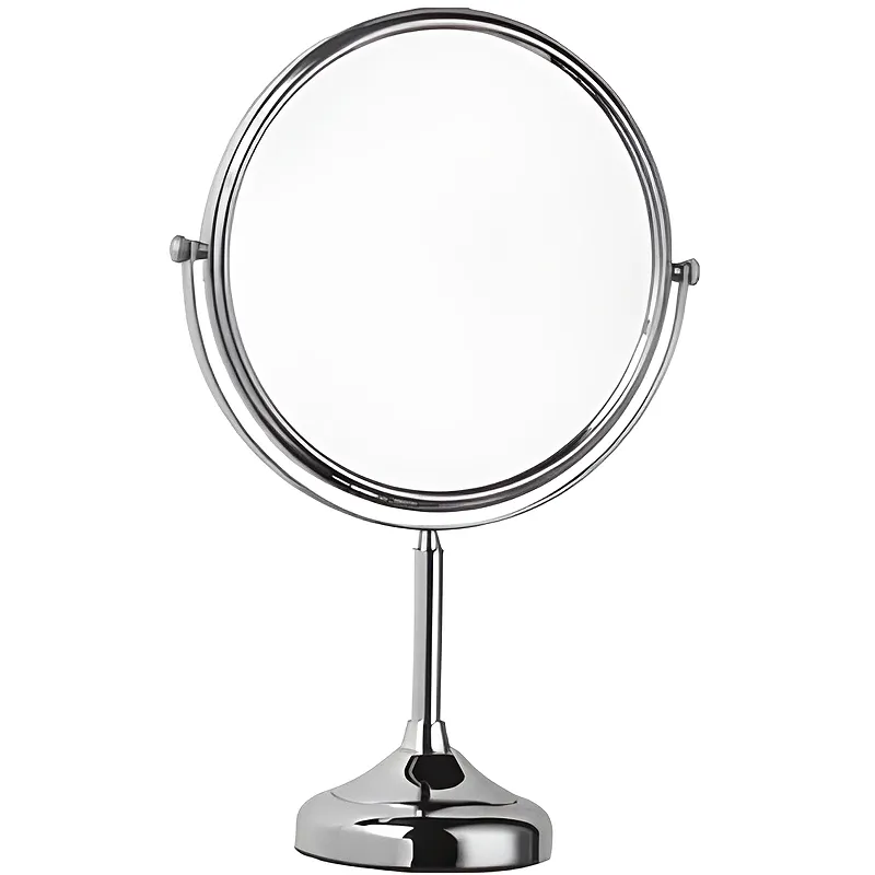 Настольное косметическое зеркало Haiba HB6206.Характеристики: Материал: металл, стекло. Цвет: хром. Поверхность: глянцевая. Размер зеркала: 6 дюйм. Монтаж: настольный. В комплекте поставки: косметическое зеркало.