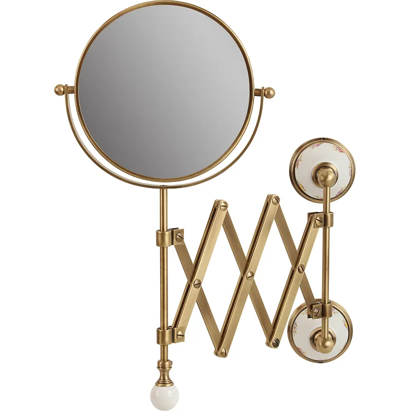 Косметическое зеркало Migliore Provance 17625 с увеличением.Косметическое зеркало Migliore стойко выдержит постоянное воздействие влаги, подчеркнув общий вид санузла.Характеристики: Цвет: бронза. Материал: латунь, стекло, керамика. Форма: круглая. 3-х кратное увеличение. Размеры (ШхВхД): 630х425х98 мм. Диаметр зеркала: 180 мм. Монтаж: настенный. В комплекте поставки: Косметическое зеркало.