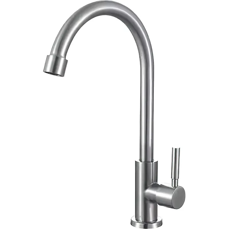 Кран для одного типа воды Ростовская Мануфактура Сантехники SUS124-269F.Характеристики: Цвет: нержавеющая сталь. Материал: нержавеющая сталь. Управление: однорычажное. Излив: высокий поворотный. Механизм работы: керамический картридж. Крепление: гайка. Стандарт подключения: G 1/2. Монтаж: на мойку. В комплекте поставки: Кран для одного типа воды. Гибкая подводка.