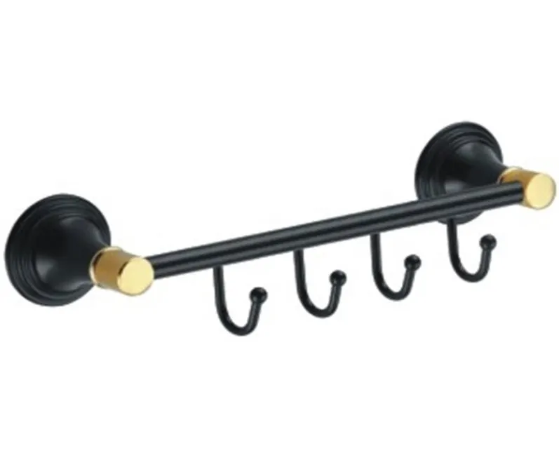 Крючки для полотенец Fixsen Luksor FX-71605-4B планка на 4 крючка в ванную комнату.Крючки выполнены в элегантном дизайне, который будет органично смотреться в интерьере ванной в современным стиле. Использованы материалы: сплав металлов, латунь с Черным покрытием и деталями в цвете Золото. Размеры: 8,5x8,5x32 см. Крепление на стену шурупами (в комплекте поставки). Блистерная упаковка.