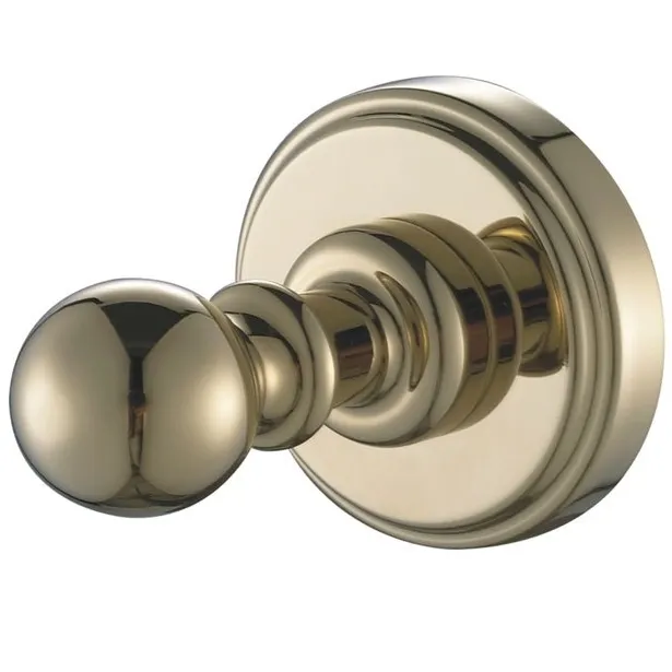 Крючок для полотенец Aquanet 4682 00189281 имеет классический дизайн в золотом цвете. Крепление, выполненное из латуни, очень надежно и устойчиво к коррозии. Крепежные элементы держателя скрыты за декоративным элементом. Мягкие, округлые линии и придадут вашему интерьеру изысканности. Размер (ШД): 5.1x6.1 см Крепление: На стену Комплект поставки: крючок, крепления
