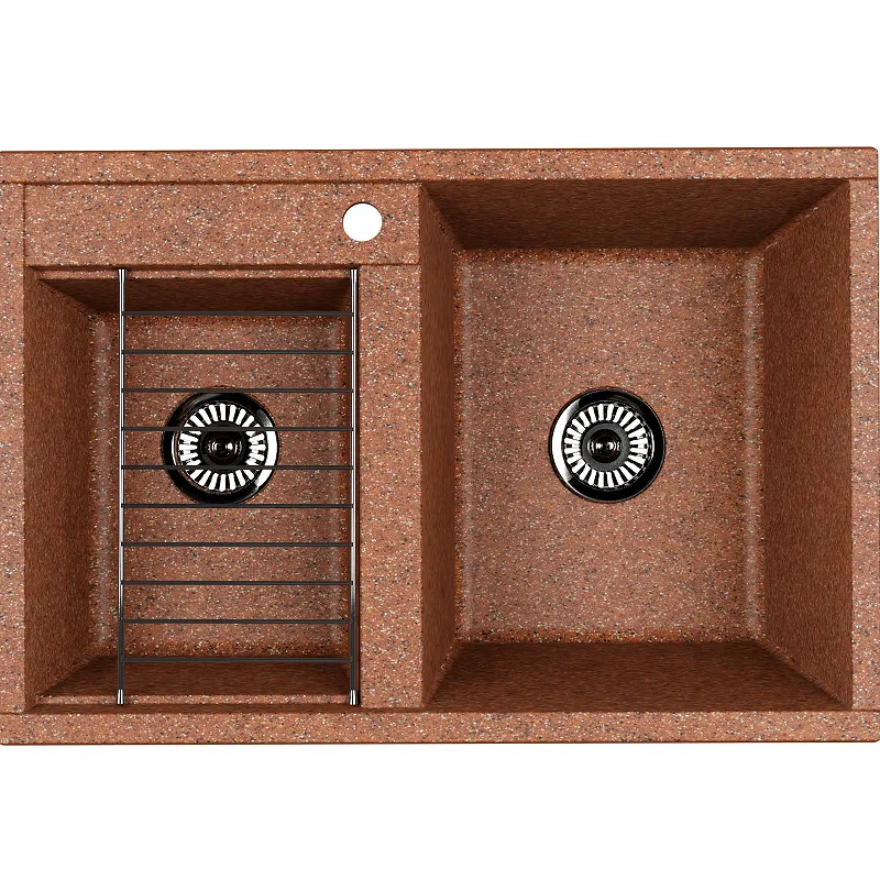 Кухонная мойка из искусственного камня Aquaton Делия 78 DBL 1A723132DE270 станет неотъемлемой частью вашей кухни. Выполненная в стильном терракотовом цвете, данная мойка гармонично впишется в любой современный интерьер. Сочетая в себе практичность и элегантность, она обеспечивает удобство в использовании благодаря своей двойной конструкции.