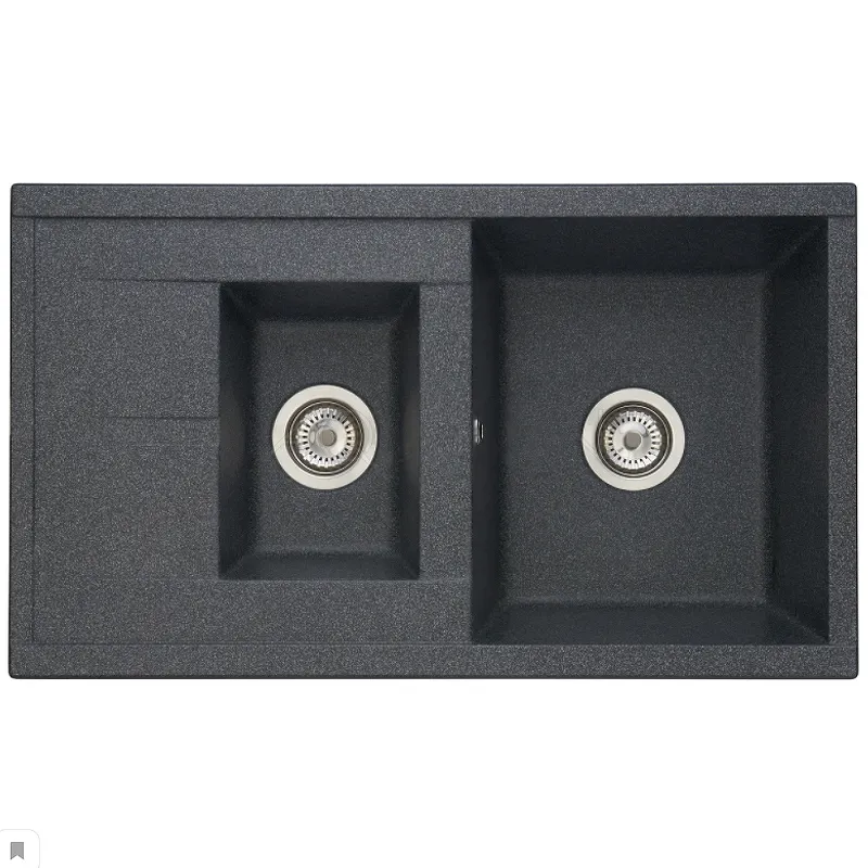 - Двойная чаша из литьевого мрамора: Позволяет удобно мыть как крупную, так и мелкую посуду, обеспечивая комфорт и функциональность.