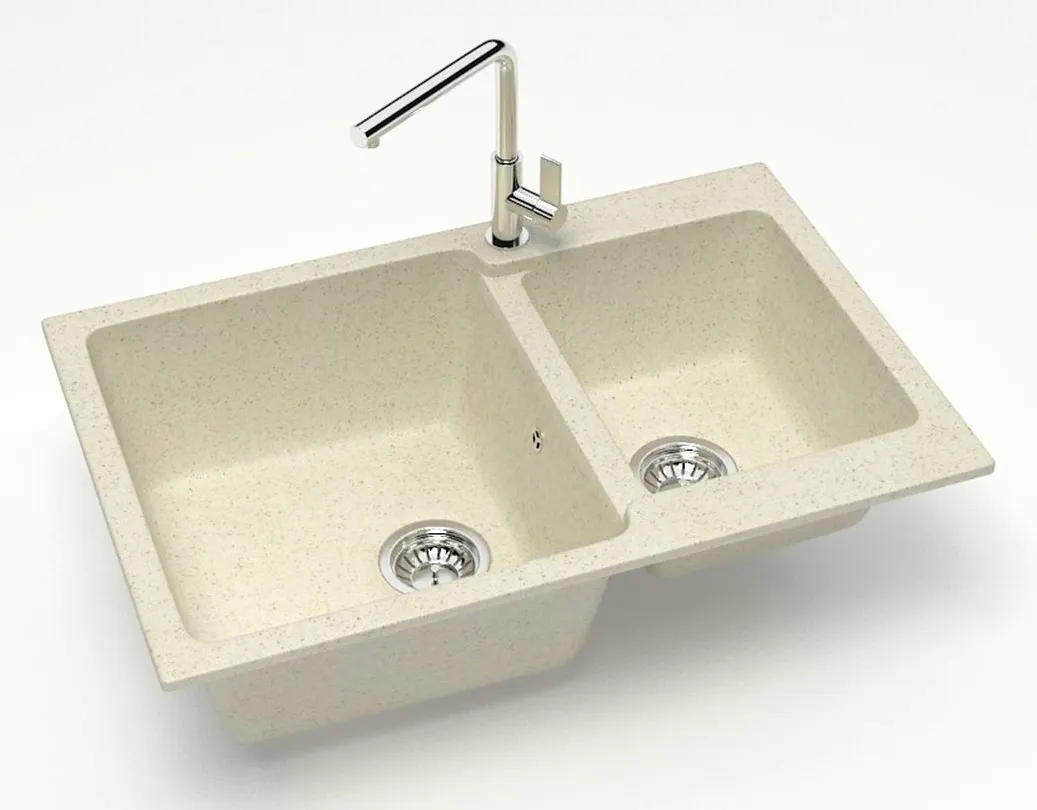 Кухонная мойка AZARIO Grand 765х500х190 двойная, искусственный мрамор, цвет бежевый арт-CS00079902