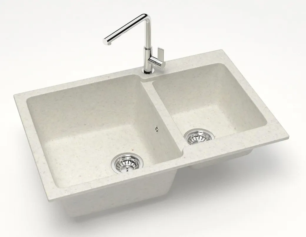 Кухонная мойка AZARIO Grand 765х500х190 двойная, искусственный мрамор, цвет Хлопок арт-CS00079904
