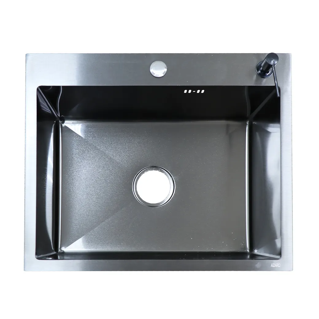 Кухонная мойка AZARIO NICOLE 500х500х220 нержавеющая сталь, в комплекте сифон, диспенсер, коландер, черный арт-AZB5050N