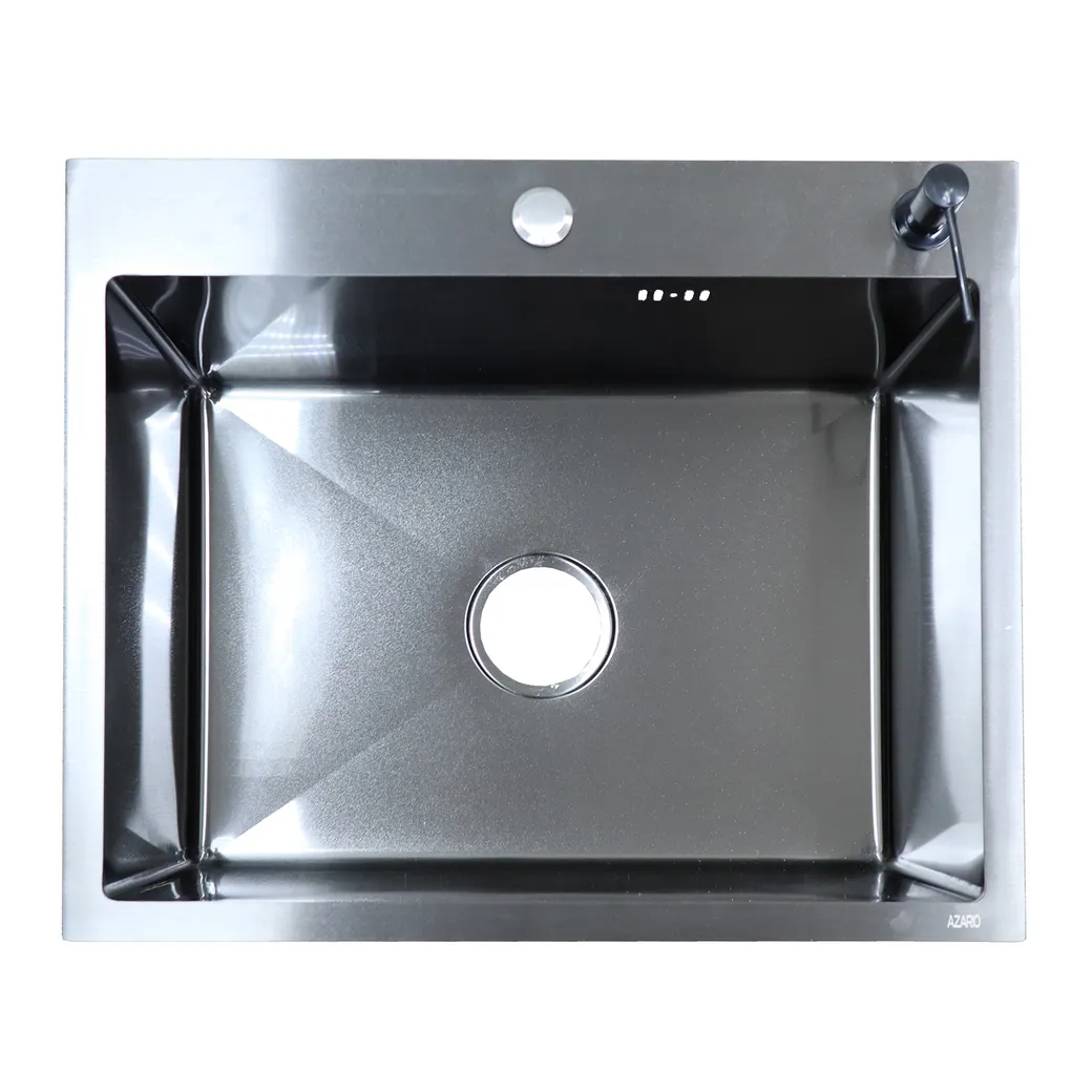 Кухонная мойка AZARIO NICOLE 600х500х220 нержавеющая сталь, в комплекте сифон, диспенсер,коландер, черная сталь арт-AZB6050N