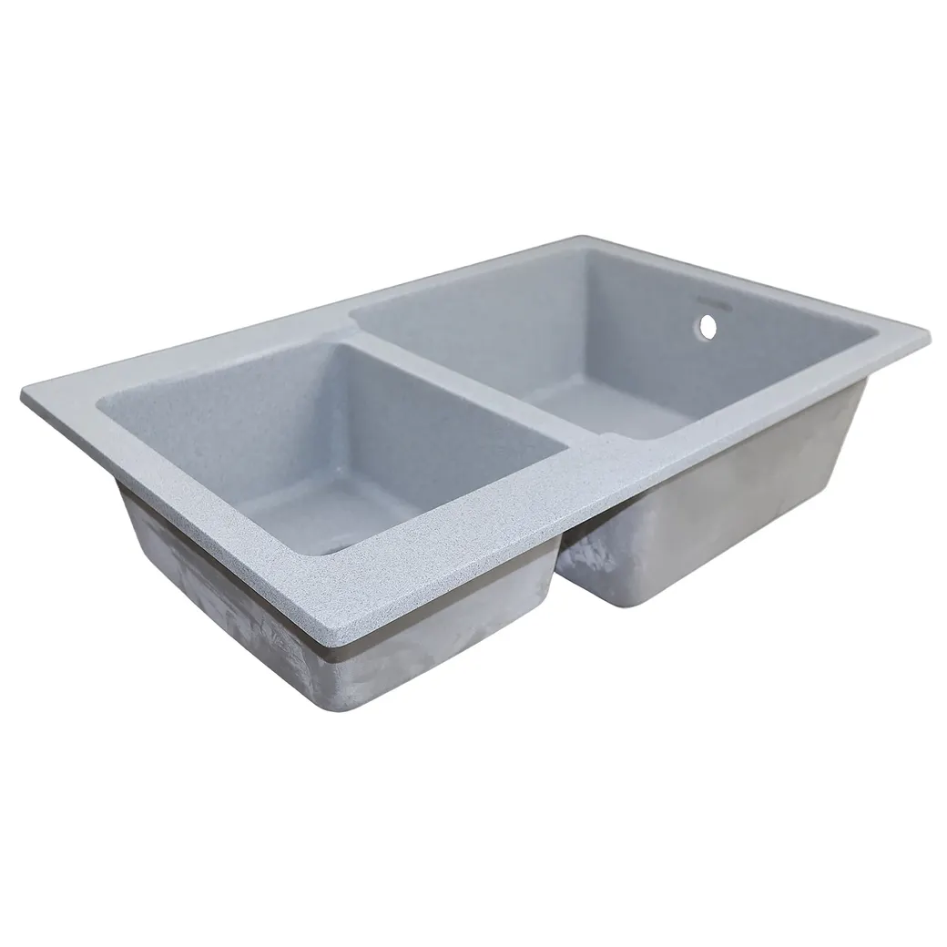 Кухонная мойка AZARIO Ostin 770x510х210 искусственный мрамор, двойная, сифон в комплекте, цвет серый арт-CS00105243