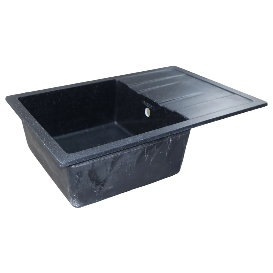 Кухонная мойка AZARIO Rio 750x505x185 искусственный мрамор, с "крылом", сифон в комплекте, цвет черный арт-CS00105230