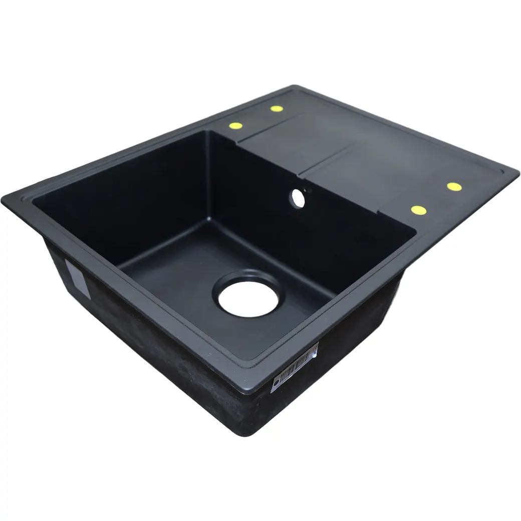 Кухонная мойка AZARIO Tavas 620х480х197 кварцевая, прямоугольная, сифон в комплекте, цвет Черный арт-CS000976724