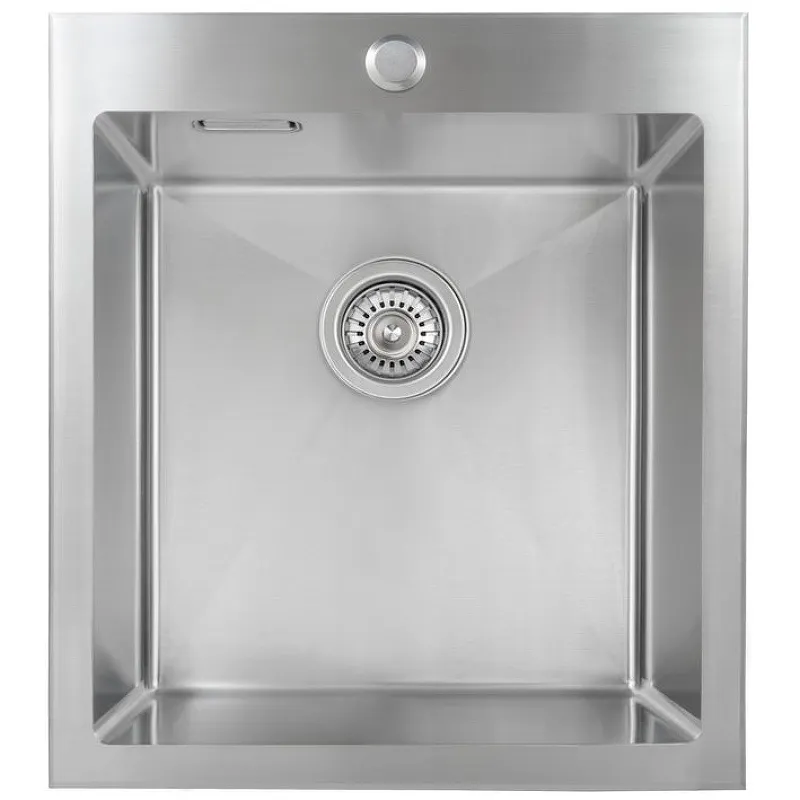Кухонная мойка KSM-4551 - универсальный внешний вид изделия дополнит большинство современных кухонных интерьеров.Технические характеристики: Материал: нержавеющая сталь. Поверхность: брашированная. Цвет: хром. Форма: прямоугольная. Габариты: 45x51 см. Глубина чаши: 20 см. Монтаж: накладной (сверху на столешницу). В комплекте поставки: кухонная мойка, сифон, выпуск для сифона, корзинчатый вентиль, крепеж.