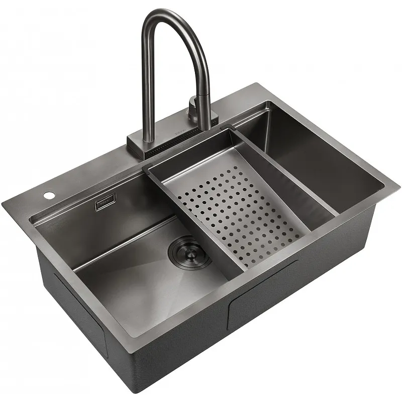 Кухонная мойка Milacio Denia 75 MC.77429 — идеальное решение для современной кухни. Изготовленная из нержавеющей стали, она отличается высокой прочностью и долговечностью. Вороненая сталь придаёт мойке стильный и современный вид, который гармонично впишется в любой интерьер. Данная кухонная мойка имеет врезной монтаж, что делает её удобной в установке и эксплуатации.