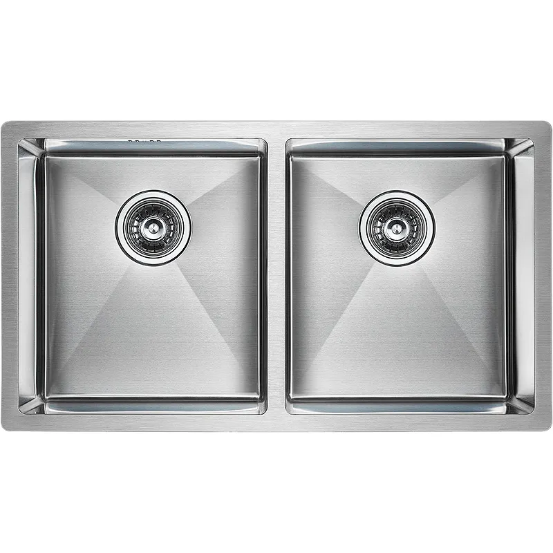 - Два просторных отделения: Кухонная мойка с двумя чашами обеспечивает удобство в использовании.