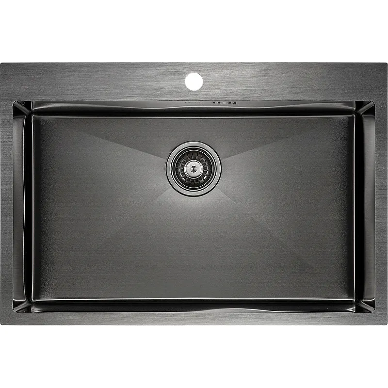 Кухонная мойка Paulmark Kroner 75 PM217551-GM из вороненой стали — это идеальное решение для современной кухни. Изготовленная из нержавеющей стали, она обладает высокой устойчивостью к царапинам и истиранию благодаря прочному PVD покрытию. Данная врезная мойка легко встраивается сверху, что делает её удобной в установке.