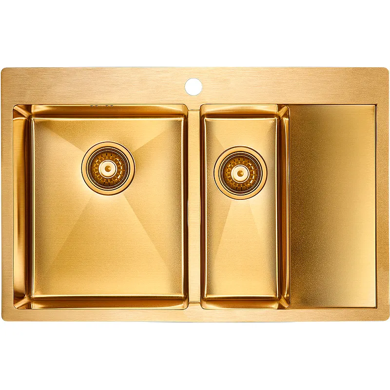 - Современный дизайн мойки: Идеально вписывается в любой интерьер благодаря стильному брашированному золоту.