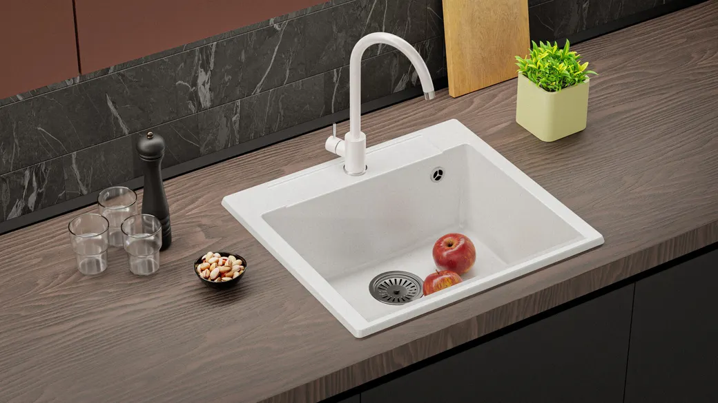 - Высокая прочность: Кухонная мойка из искусственного камня выдерживает температурные колебания и механические нагрузки, что гарантирует долговечность.