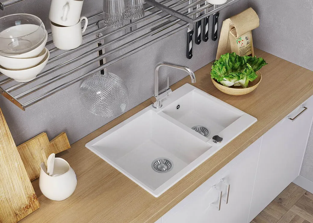 - Высокая прочность: Изготовлена из литого композита, эта кухонная мойка выдерживает температурные колебания и обладает высокой прочностью.