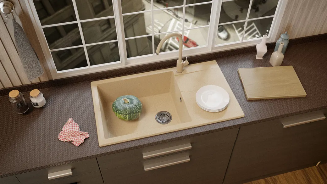 - Стойкость к воздействию температуры: Искусственный камень гарантирует, что мойка выдержит любые температурные колебания без повреждений.