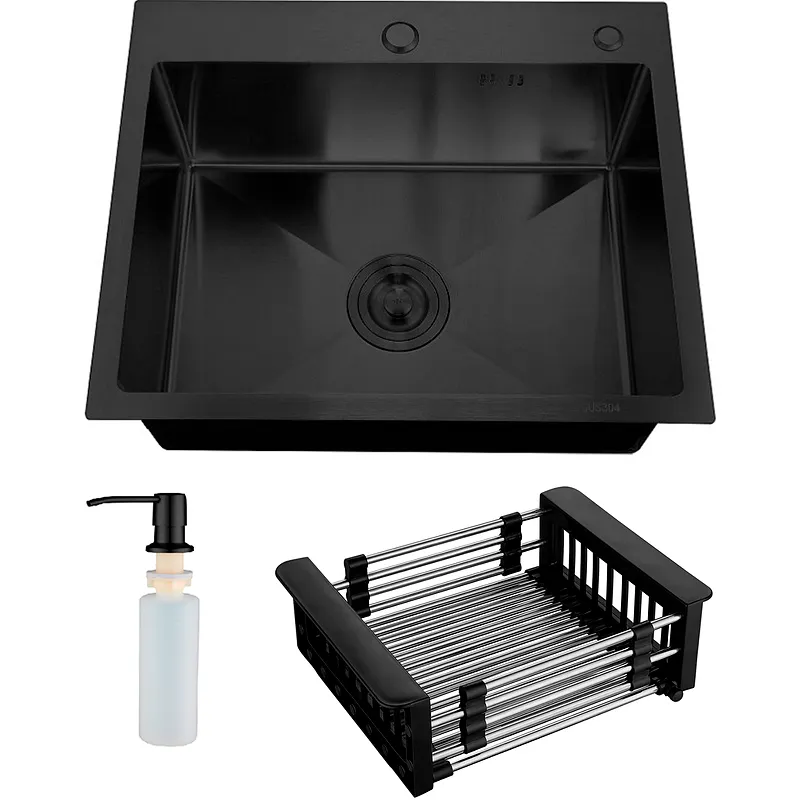 Кухонная мойка Ростовская Мануфактура Сантехники 50 MR-5050BL c корзиной и дозатором.Характеристики: Цвет: графит. Поверхность: матовая. Материал: нержавеющая сталь. Толщина стали: 1-3 мм. Размеры мойки (ШхВхГ): 500х200х500 мм. Размеры чаши (ШхГ): 450х400 мм. Диаметр слива: 110 мм. Форма: квадратная. Отверстия под смеситель: 1. Перелив. Монтаж: врезной (встраиваемый сверху). В комплекте поставки: Кухонная мойка. Дозатор. Корзина раздвижная. Сифон. Клапан-автомат. Комплект креплений.