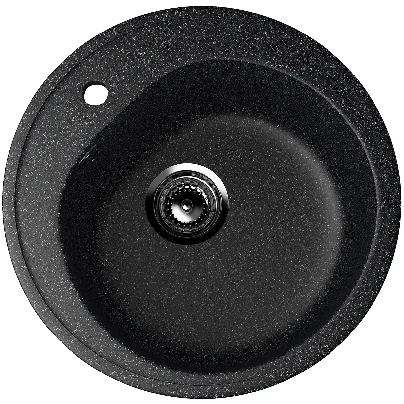 Кухонная мойка Ulgran Classic U-101-308.Характеристики: Цвет: черный. Материал: искусственный камень на основе натурального мрамора (80%) и полимерных связующих (20%). Защитное покрытие гелькоут. Поверхность: матовая. Толщина материала: 15 мм. Размер мойки (ШхВхД): 500х180х500 мм. Размер чаши (ШхВхД): 380х180х365 мм. Диаметр установочного проема: 475 мм. Диаметр слива: 9 см. Отверстия под смеситель: 1. Форма: круглая. Перелив. Монтаж: врезной (встраиваемая сверху). В комплекте поставки: Мойка. Сливная арматура, гофро-труба. Корзинчатый вентиль. Сифон.