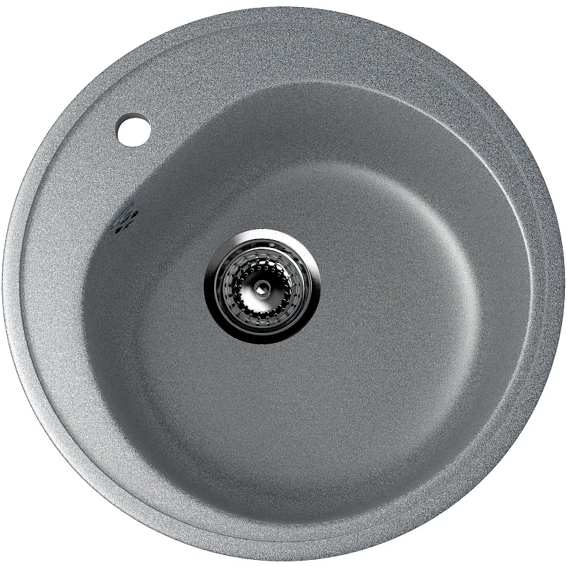 Кухонная мойка Ulgran Classic U-101-309.Характеристики: Цвет: темно-серый. Материал: искусственный камень на основе натурального мрамора (80%) и полимерных связующих (20%). Защитное покрытие гелькоут. Поверхность: матовая. Толщина материала: 15 мм. Размер мойки (ШхВхД): 500х180х500 мм. Размер чаши (ШхВхД): 380х180х365 мм. Диаметр установочного проема: 475 мм. Диаметр слива: 9 см. Отверстия под смеситель: 1. Форма: круглая. Перелив. Монтаж: врезной (встраиваемая сверху). В комплекте поставки: Мойка. Сливная арматура, гофро-труба. Корзинчатый вентиль. Сифон.