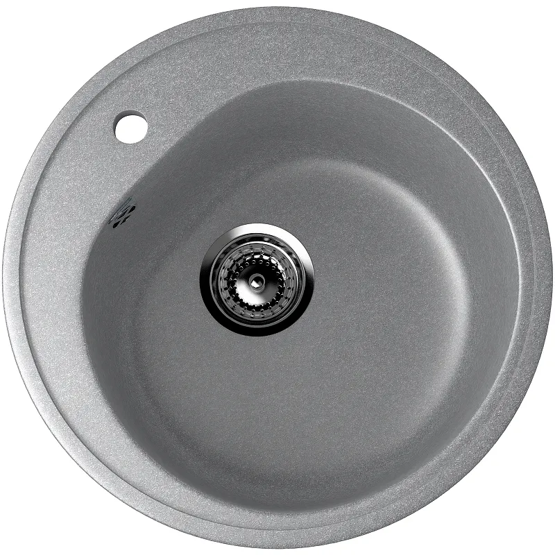 Кухонная мойка Ulgran Classic U-101-342.Характеристики: Цвет: графит. Материал: искусственный камень на основе натурального мрамора (80%) и полимерных связующих (20%). Защитное покрытие гелькоут. Поверхность: матовая. Толщина материала: 15 мм. Размер мойки (ШхВхД): 500х180х500 мм. Размер чаши (ШхВхД): 380х180х365 мм. Диаметр установочного проема: 475 мм. Диаметр слива: 9 см. Отверстия под смеситель: 1. Форма: круглая. Перелив. Монтаж: врезной (встраиваемая сверху). В комплекте поставки: Мойка. Сливная арматура, гофро-труба. Корзинчатый вентиль. Сифон.