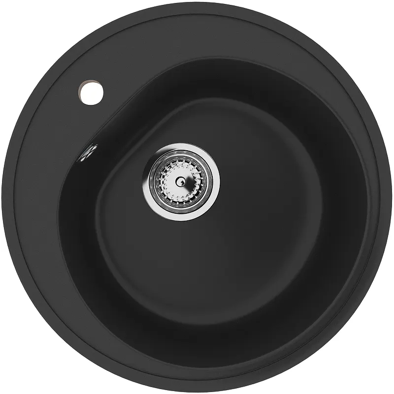 Кухонная мойка Ulgran Classic U-101-344.Характеристики: Цвет: ультра-черный. Материал: искусственный камень на основе натурального мрамора (80%) и полимерных связующих (20%). Защитное покрытие гелькоут. Поверхность: матовая. Толщина материала: 15 мм. Размер мойки (ШхВхД): 500х180х500 мм. Размер чаши (ШхВхД): 380х180х365 мм. Диаметр установочного проема: 475 мм. Диаметр слива: 9 см. Отверстия под смеситель: 1. Форма: круглая. Перелив. Монтаж: врезной (встраиваемая сверху). В комплекте поставки: Мойка. Сливная арматура, гофро-труба. Корзинчатый вентиль. Сифон.