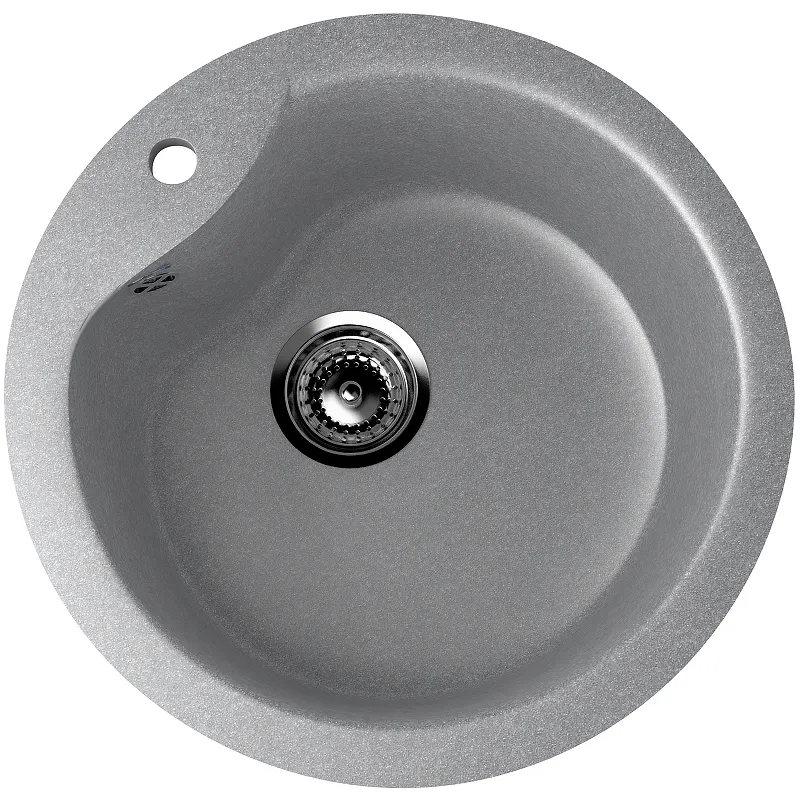 Кухонная мойка Ulgran Classic U-102-342.Характеристики: Цвет: графит. Материал: искусственный камень на основе натурального мрамора (80%) и полимерных связующих (20%). Защитное покрытие гелькоут. Поверхность: матовая. Толщина материала: 15 мм. Размер мойки (ШхВхД): 480х210х480 мм. Размер чаши (ШхВхД): 400х210х355 мм. Диаметр установочного проема: 455 мм. Диаметр слива: 9 см. Отверстия под смеситель: 1. Форма: круглая. Перелив. Монтаж: врезной (встраиваемая сверху). В комплекте поставки: Мойка. Сливная арматура, гофро-труба. Корзинчатый вентиль. Сифон.