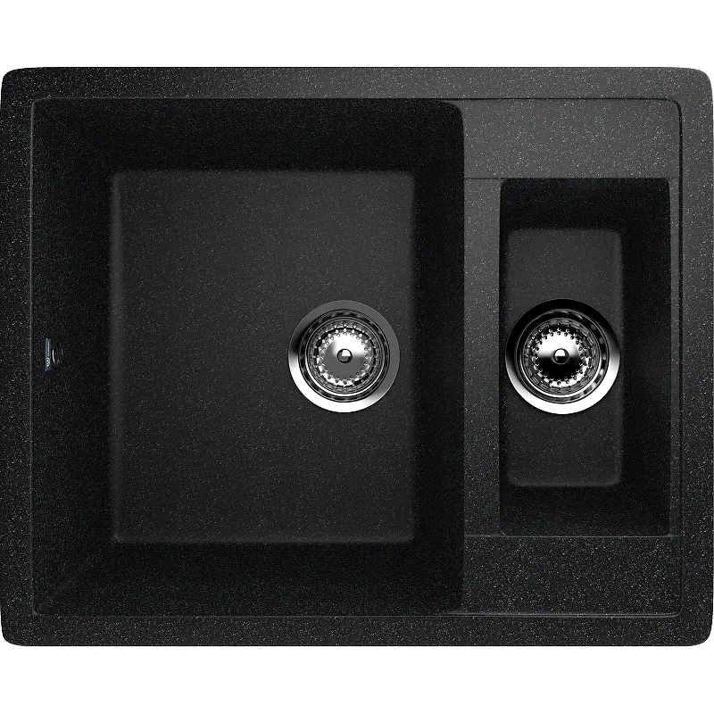 Кухонная мойка Ulgran Classic U-106-308.Характеристики: Цвет: черный. Материал: искусственный камень на основе натурального мрамора (80%) и полимерных связующих (20%). Защитное покрытие гелькоут. Поверхность: матовая. Толщина материала: 15 мм. Размер мойки (ШхВхД): 600х190х485 мм. Размер основной чаши (ШхВхД): 330хх190х410 мм. Размер дополнительной чаши (ШхВхД): 150х140х275 мм. Размер установочного проема (ШхД): 575х460 мм. Расположение дополнительной чаши: оборачиваемая. Диаметр слива: 9 см. Форма: прямоугольная. Перелив в основной чаше. Монтаж: врезной (встраиваемая сверху). В комплекте поставки: Мойка. Сливная арматура, гофро-труба. Корзинчатый вентиль. Сифон.
