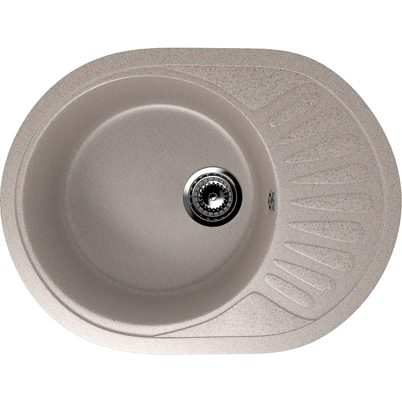 Кухонная мойка Ulgran Classic U-107m-302.Характеристики: Цвет: песочный. Материал: искусственный камень на основе натурального мрамора (80%) и полимерных связующих (20%). Защитное покрытие гелькоут. Поверхность: матовая. Толщина материала: 15 мм. Размер мойки (ШхВхД): 570х155х450 мм. Диаметр основной чаши: 345 мм. Размер установочного проема (ШхД): 545х425 мм. Диаметр слива: 9 см. Форма: овальная. Расположения крыла: оборачиваемая. Перелив. Монтаж: врезной (встраиваемая сверху). В комплекте поставки: Кухонная мойка. Сливная арматура, гофро-труба. Корзинчатый вентиль. Сифон.
