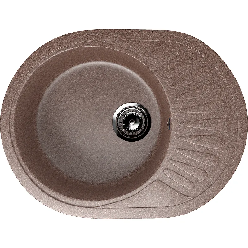 Кухонная мойка Ulgran Classic U-107m-307.Характеристики: Цвет: терракот. Материал: искусственный камень на основе натурального мрамора (80%) и полимерных связующих (20%). Защитное покрытие гелькоут. Поверхность: матовая. Толщина материала: 15 мм. Размер мойки (ШхВхД): 570х155х450 мм. Диаметр основной чаши: 345 мм. Размер установочного проема (ШхД): 545х425 мм. Диаметр слива: 9 см. Форма: овальная. Расположения крыла: оборачиваемая. Перелив. Монтаж: врезной (встраиваемая сверху). В комплекте поставки: Кухонная мойка. Сливная арматура, гофро-труба. Корзинчатый вентиль. Сифон.