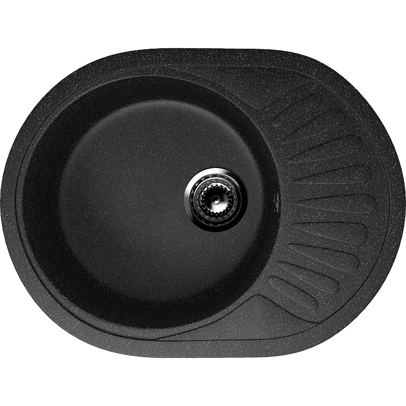 Кухонная мойка Ulgran Classic U-107m-308.Характеристики: Цвет: черный. Материал: искусственный камень на основе натурального мрамора (80%) и полимерных связующих (20%). Защитное покрытие гелькоут. Поверхность: матовая. Толщина материала: 15 мм. Размер мойки (ШхВхД): 570х155х450 мм. Диаметр основной чаши: 345 мм. Размер установочного проема (ШхД): 545х425 мм. Диаметр слива: 9 см. Форма: овальная. Расположения крыла: оборачиваемая. Перелив. Монтаж: врезной (встраиваемая сверху). В комплекте поставки: Кухонная мойка. Сливная арматура, гофро-труба. Корзинчатый вентиль. Сифон.