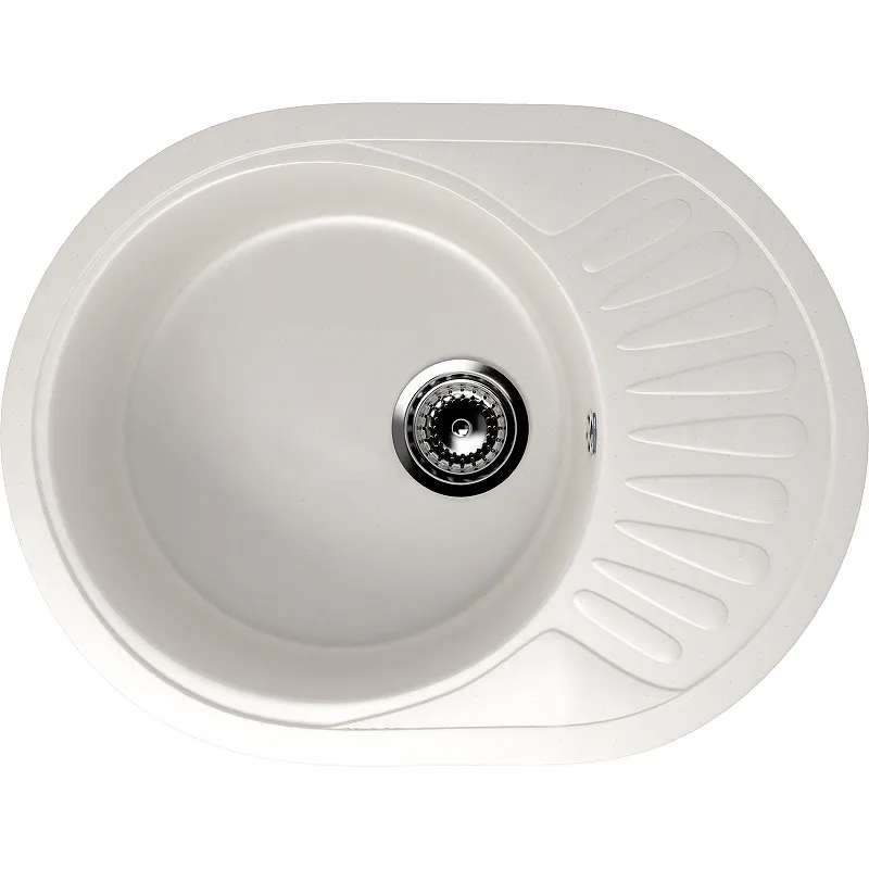 Кухонная мойка Ulgran Classic U-107m-331.Характеристики: Цвет: белый. Материал: искусственный камень на основе натурального мрамора (80%) и полимерных связующих (20%). Защитное покрытие гелькоут. Поверхность: матовая. Толщина материала: 15 мм. Размер мойки (ШхВхД): 570х155х450 мм. Диаметр основной чаши: 345 мм. Размер установочного проема (ШхД): 545х425 мм. Диаметр слива: 9 см. Форма: овальная. Расположения крыла: оборачиваемая. Перелив. Монтаж: врезной (встраиваемая сверху). В комплекте поставки: Кухонная мойка. Сливная арматура, гофро-труба. Корзинчатый вентиль. Сифон.