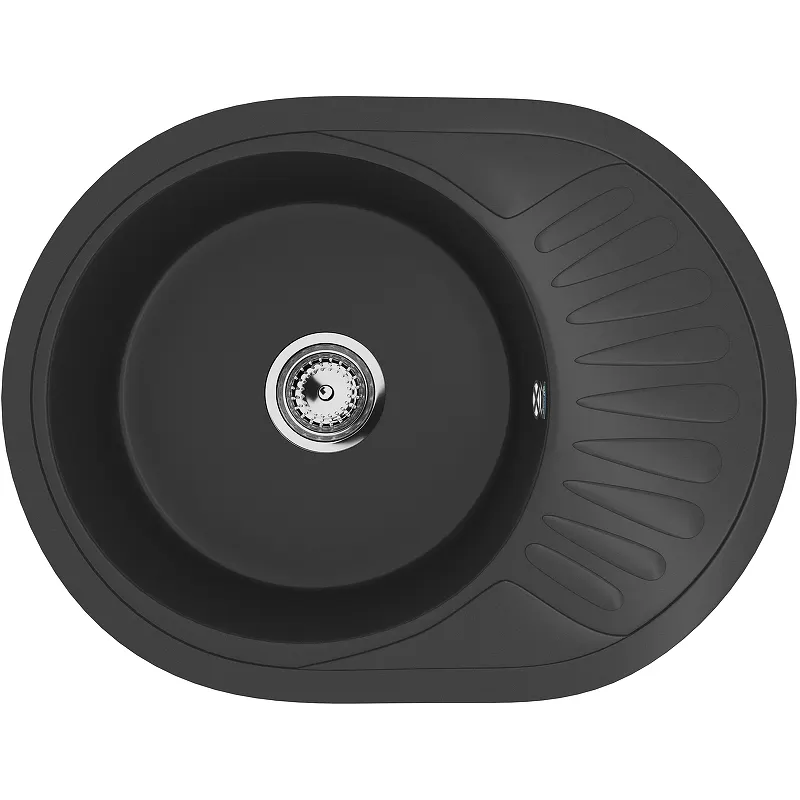 Кухонная мойка Ulgran Classic U-107m-344.Характеристики: Цвет: ультра-черный. Материал: искусственный камень на основе натурального мрамора (80%) и полимерных связующих (20%). Защитное покрытие гелькоут. Поверхность: матовая. Толщина материала: 15 мм. Размер мойки (ШхВхД): 570х155х450 мм. Диаметр основной чаши: 345 мм. Размер установочного проема (ШхД): 545х425 мм. Диаметр слива: 9 см. Форма: овальная. Расположения крыла: оборачиваемая. Перелив. Монтаж: врезной (встраиваемая сверху). В комплекте поставки: Кухонная мойка. Сливная арматура, гофро-труба. Корзинчатый вентиль. Сифон.