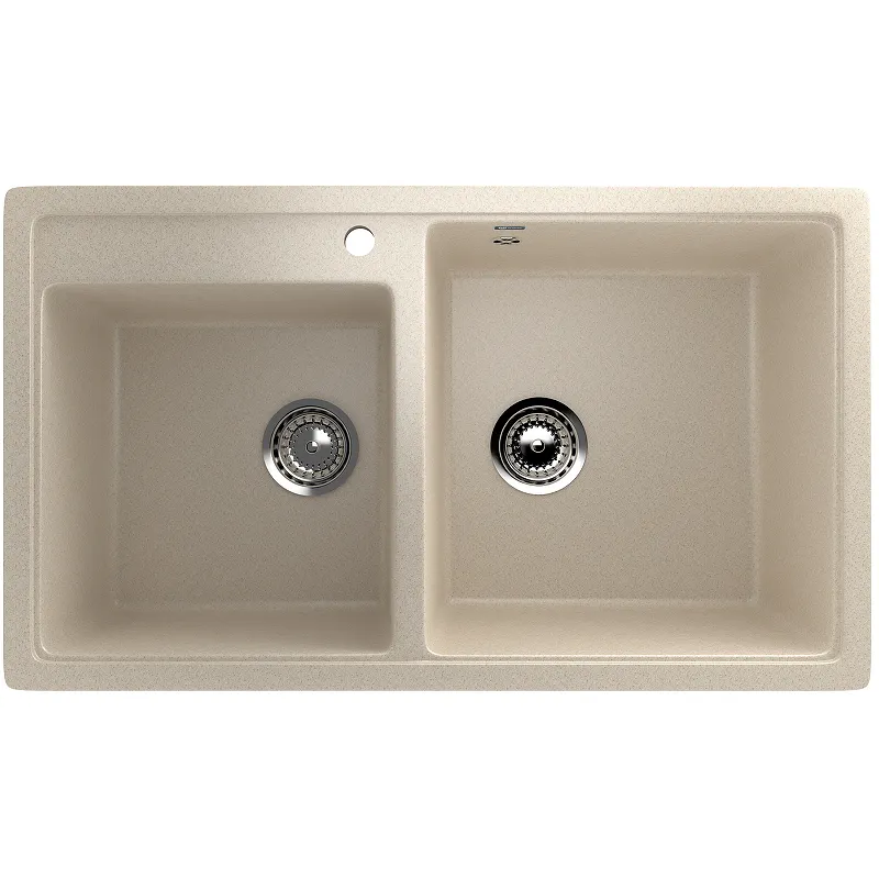 Кухонная мойка Ulgran Classic U-200-328.Характеристики: Цвет: бежевый. Поверхность: матовая. Материал: искусственный камень на основе натурального мрамора (80%) и полимерных связующих (20%). Форма: прямоугольная. Размеры мойки (ШхВхД): 840x200х485 мм. Размеры основной чаши (ШхВхД): 395х200х415 мм. Размеры дополнительной чаши (ШхВхД): 340х200х350 мм. Диаметр сливного отверстия: 9 см. Расположение переливного отверстия: в чаше мойки. Количество отверстий под смеситель: 1. Расположение дополнительной чаши: слева. Монтаж: врезной. В комплекте поставки: Кухонная мойка. Сливная арматура. Корзинчатый вентиль Сифон.