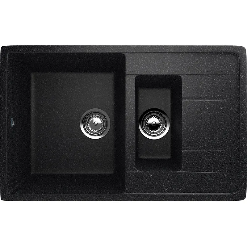 Кухонная мойка Ulgran Classic U-205-308.Характеристики: Цвет: черный. Поверхность: матовая. Материал: искусственный камень на основе натурального мрамора (80%) и полимерных связующих (20%). Форма: прямоугольная. Размеры мойки (ШхВхД): 770x195х495 мм. Размеры основной чаши (ШхВхД): 340х195х430 мм. Размеры дополнительной чаши (ШхВхД): 150х140х290 мм. Диаметр сливного отверстия: 9 см. Толщина материала: 15 мм. Расположение переливного отверстия: в чаше мойки. С крылом. Расположение крыла и дополнительной чаши: оборачиваемая. Перелив. Монтаж: врезной (встраиваемая сверху). В комплекте поставки: Мойка. Сливная арматура, гофро-труба. Корзинчатый вентиль. Сифон.