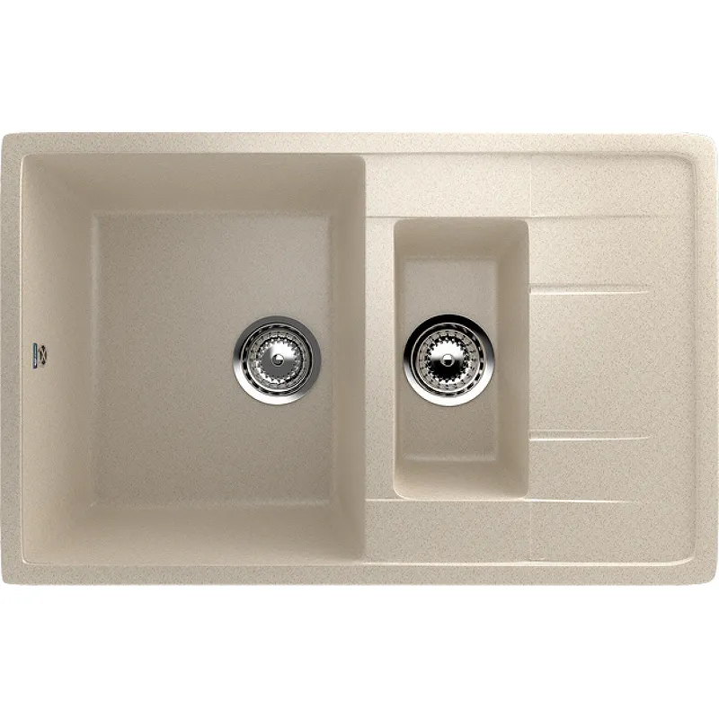 Кухонная мойка Ulgran Classic U-205-328.Характеристики: Цвет: бежевый. Поверхность: матовая. Материал: искусственный камень на основе натурального мрамора (80%) и полимерных связующих (20%). Форма: прямоугольная. Размеры мойки (ШхВхД): 770x195х495 мм. Размеры основной чаши (ШхВхД): 340х195х430 мм. Размеры дополнительной чаши (ШхВхД): 150х140х290 мм. Диаметр сливного отверстия: 9 см. Толщина материала: 15 мм. Расположение переливного отверстия: в чаше мойки. С крылом. Расположение крыла и дополнительной чаши: оборачиваемая. Перелив. Монтаж: врезной (встраиваемая сверху). В комплекте поставки: Мойка. Сливная арматура, гофро-труба. Корзинчатый вентиль. Сифон.