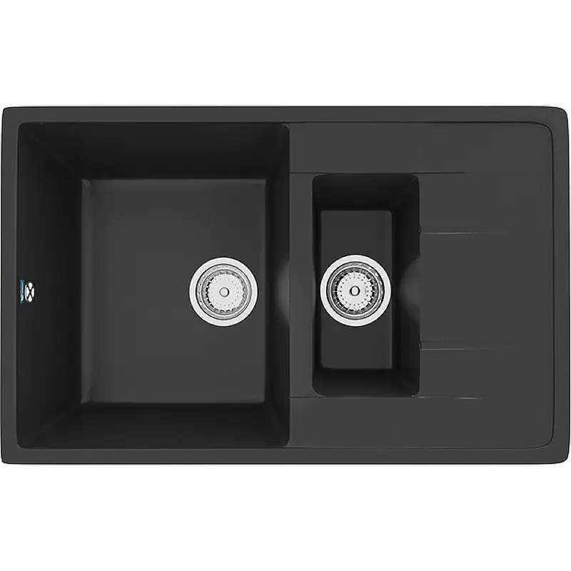 Кухонная мойка Ulgran Classic U-205-344.Характеристики: Цвет: ультра-черный. Поверхность: матовая. Материал: искусственный камень на основе натурального мрамора (80%) и полимерных связующих (20%). Форма: прямоугольная. Размеры мойки (ШхВхД): 770x195х495 мм. Размеры основной чаши (ШхВхД): 340х195х430 мм. Размеры дополнительной чаши (ШхВхД): 150х140х290 мм. Диаметр сливного отверстия: 9 см. Толщина материала: 15 мм. Расположение переливного отверстия: в чаше мойки. С крылом. Расположение крыла и дополнительной чаши: оборачиваемая. Перелив. Монтаж: врезной (встраиваемая сверху). В комплекте поставки: Мойка. Сливная арматура, гофро-труба. Корзинчатый вентиль. Сифон.