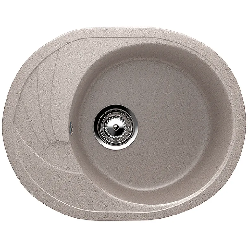 Кухонная мойка Ulgran Classic U-403-302.Характеристики: Цвет: песочный. Материал: искусственный камень на основе натурального мрамора (80%) и полимерных связующих (20%). Защитное покрытие гелькоут. Поверхность: матовая. Толщина материала: 15 мм. Размер мойки (ШхВхД): 570х180х465 мм. Диаметр чаши: 390 мм. Диаметр слива: 9 см. Форма мойки: овальная. Форма чаши: круглая. С крылом. Расположение крыла: оборачиваемое. Перелив. Расположение переливного отверстия: в чаше мойки. Монтаж: врезной (встраиваемая сверху). В комплекте поставки: Мойка. Сливная арматура, гофро-труба. Корзинчатый вентиль. Сифон.