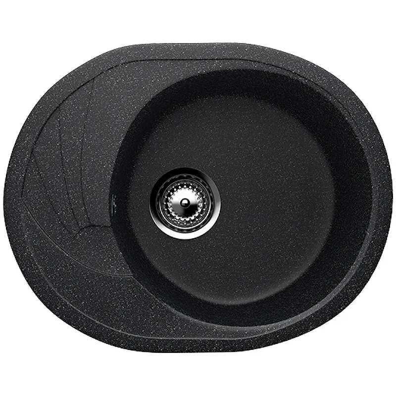 Кухонная мойка Ulgran Classic U-403-308.Характеристики: Цвет: черный. Материал: искусственный камень на основе натурального мрамора (80%) и полимерных связующих (20%). Защитное покрытие гелькоут. Поверхность: матовая. Толщина материала: 15 мм. Размер мойки (ШхВхД): 570х180х465 мм. Диаметр чаши: 390 мм. Диаметр слива: 9 см. Форма мойки: овальная. Форма чаши: круглая. С крылом. Расположение крыла: оборачиваемое. Перелив. Расположение переливного отверстия: в чаше мойки. Монтаж: врезной (встраиваемая сверху). В комплекте поставки: Мойка. Сливная арматура, гофро-труба. Корзинчатый вентиль. Сифон.
