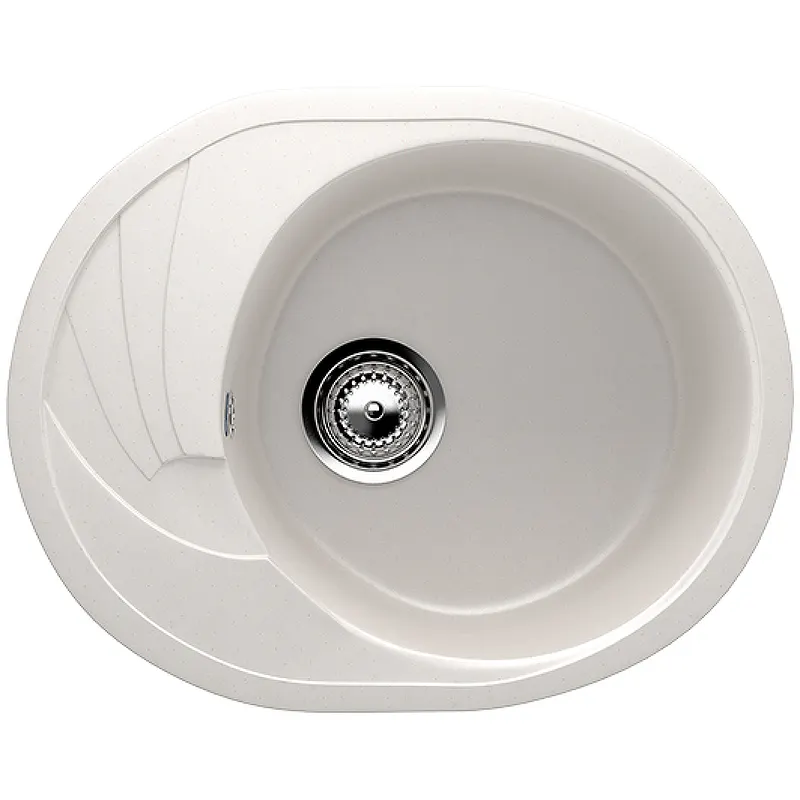 Кухонная мойка Ulgran Classic U-403-331.Характеристики: Цвет: белый. Материал: искусственный камень на основе натурального мрамора (80%) и полимерных связующих (20%). Защитное покрытие гелькоут. Поверхность: матовая. Толщина материала: 15 мм. Размер мойки (ШхВхД): 570х180х465 мм. Диаметр чаши: 390 мм. Диаметр слива: 9 см. Форма мойки: овальная. Форма чаши: круглая. С крылом. Расположение крыла: оборачиваемое. Перелив. Расположение переливного отверстия: в чаше мойки. Монтаж: врезной (встраиваемая сверху). В комплекте поставки: Мойка. Сливная арматура, гофро-труба. Корзинчатый вентиль. Сифон.