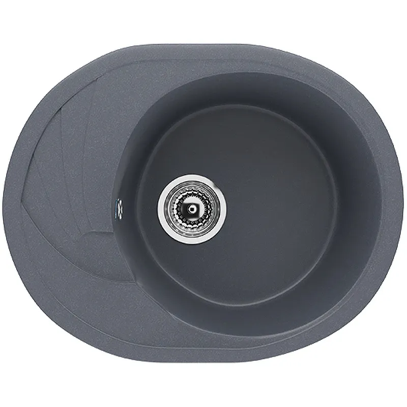 Кухонная мойка Ulgran Classic U-403-343.Характеристики: Цвет: антрацит. Материал: искусственный камень на основе натурального мрамора (80%) и полимерных связующих (20%). Защитное покрытие гелькоут. Поверхность: матовая. Толщина материала: 15 мм. Размер мойки (ШхВхД): 570х180х465 мм. Диаметр чаши: 390 мм. Диаметр слива: 9 см. Форма мойки: овальная. Форма чаши: круглая. С крылом. Расположение крыла: оборачиваемое. Перелив. Расположение переливного отверстия: в чаше мойки. Монтаж: врезной (встраиваемая сверху). В комплекте поставки: Мойка. Сливная арматура, гофро-труба. Корзинчатый вентиль. Сифон.