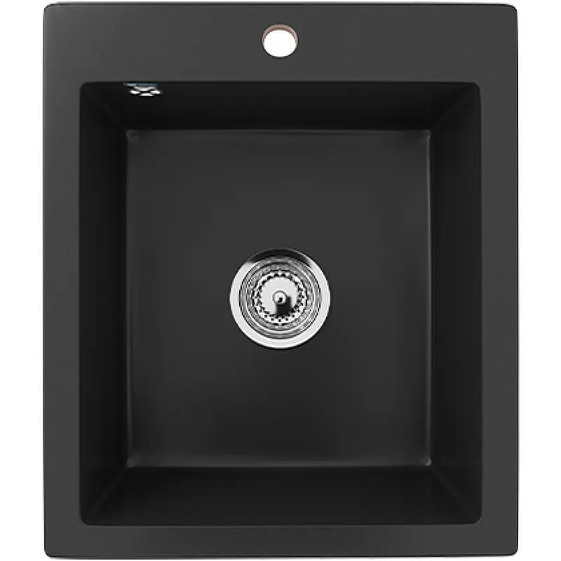 Кухонная мойка Ulgran Classic U-404-344.Характеристики: Цвет: ультра-черный. Материал: искусственный камень на основе натурального мрамора (80%) и полимерных связующих (20%). Защитное покрытие гелькоут. Поверхность: матовая. Толщина материала: 15 мм. Размер мойки (ШхВхД): 420х190х495 мм. Размер чаши (ШхВхД): 350х190х380 мм. Диаметр слива: 9 см. Форма мойки: прямоугольная. Количество отверстий под смеситель: 1. Перелив. Расположение переливного отверстия: в чаше мойки. Монтаж: врезной (встраиваемая сверху). В комплекте поставки: Мойка. Сливная арматура, гофро-труба. Корзинчатый вентиль. Сифон.
