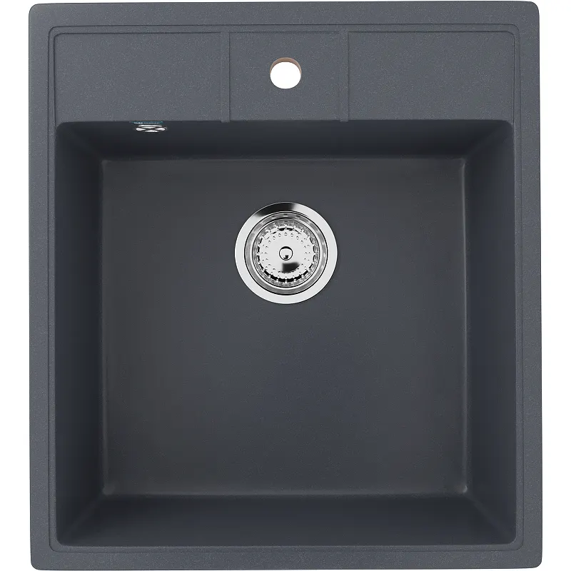 Кухонная мойка Ulgran Classic U-406-343.Характеристики: Цвет: антрацит. Материал: искусственный камень на основе натурального мрамора (80%) и полимерных связующих (20%). Защитное покрытие гелькоут. Поверхность: матовая. Толщина материала: 15 мм. Размер мойки (ШхВхД): 445х190х500 мм. Размер чаши (ШхВхД): 380х190х365 мм. Размер установочного проема: 420х475 мм. Диаметр слива: 9 см. Отверстия под смеситель: 1. Форма: прямоугольная. Перелив. Монтаж: врезной (встраиваемая сверху). В комплекте поставки: Мойка. Сливная арматура, гофро-труба. Корзинчатый вентиль. Сифон.