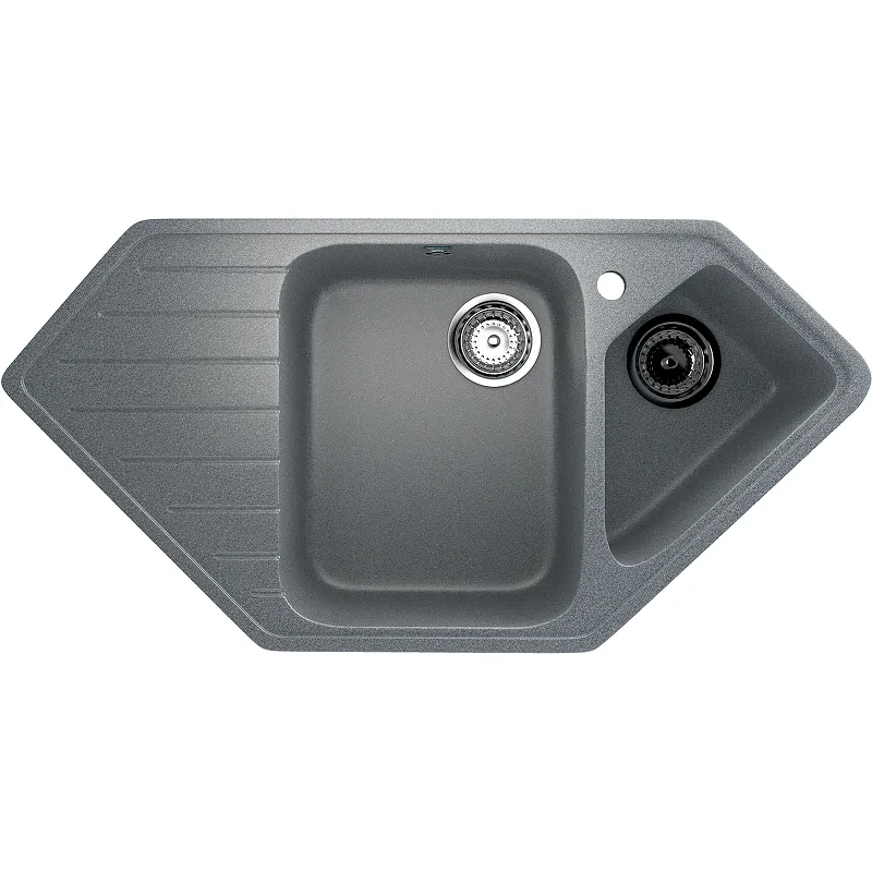 Угловая двухсекционная кухонная мойка Ulgran Classic U-409-309.Большая угловая мойка с боковым крылом и объемной дополнительной чашей. Модель имеет строгую современную геометрию. Функциональное сочетание большого бокового крыла и коландера, что позволит Вам одновременно мыть посуду, размораживать мясо, а также сушить посуду или фрукты с овощами, например.Характеристики: Цвет: темно-серый. Материал: искусственный камень на основе натурального мрамора (80%) и полимерных связующих (20%). Защитное покрытие гелькоут: не имеет микропор, не впитывает загрязнения, устойчив к ультрафиолету, обладает антибактериальными свойствами. Поверхность: матовая. Толщина материала: 15 мм. Размер мойки (ШхД): 970х500 мм. Размер основной чаши (ШхДхГ): 350х435х200 мм. Размер дополнительной чаши (ШхДхГ): 250х335х175 мм. Размер установочного проема: 945х475 мм. Диаметр слива: 9 см. Отверстия под смеситель: 1. Расположение крыла: слева. Перелив. Монтаж: врезной (встраиваемая сверху). В комплекте поставки: Мойка. Сливная арматура, гофро-труба. Корзинчатый вентиль. Сифон.