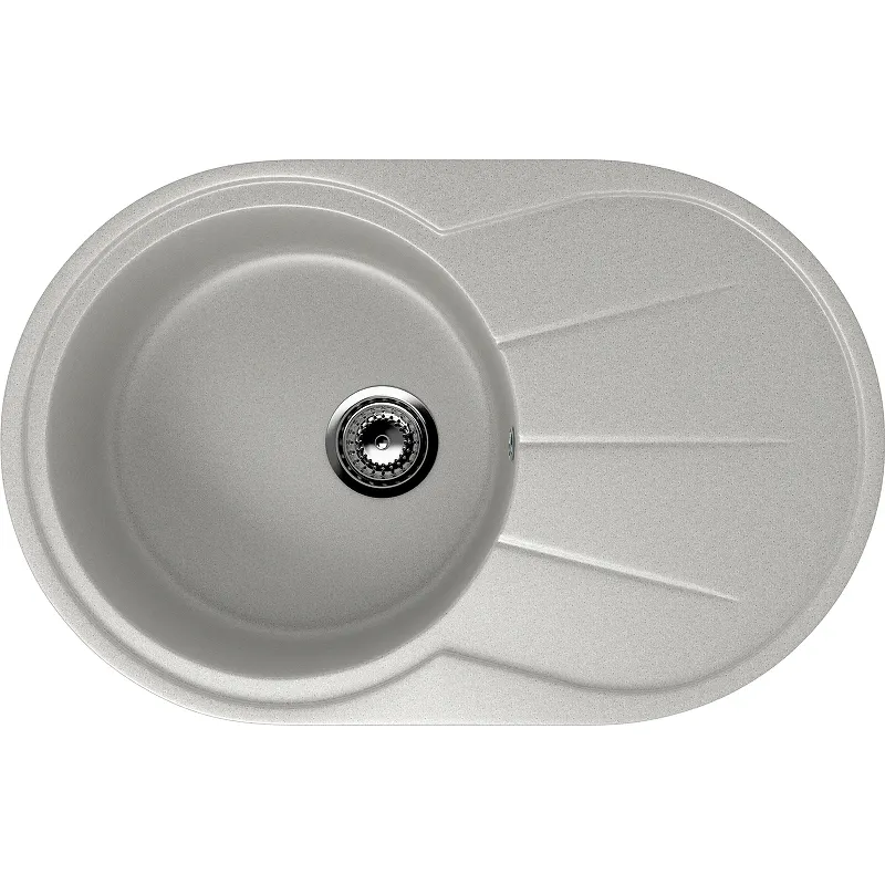 Кухонная мойка Ulgran Classic U-503-310.Односекционная реверсивная мойка овальной формы с боковым крылом. Очень практичная и удобная мойка со всеми преимуществами бокового крыла. С этой моделью у Вас не возникнет проблем с разморозкой, мойкой и сушкой зелени, овощей и фруктов, Вы всегда сможете поставить на это крыло горячую кастрюлю или сковородку. А также крыло отличное место, чтобы высушить банки и кастрюли, которые не помещаются в обычную сушилку. Характеристики: Цвет: серый. Материал: искусственный камень на основе натурального мрамора (80%) и полимерных связующих (20%). Защитное покрытие гелькоут: не имеет микропор, не впитывает загрязнения, устойчив к ультрафиолету, обладает антибактериальными свойствами. Поверхность: матовая. Толщина материала: 15 мм. Размер мойки (ШхВхД): 750х200х480 мм. Диаметр основной чаши: 410 мм. Размер установочного проема (ШхД): 725х455 мм. Минимальная ширина шкафа: 500 мм. Диаметр слива: 9 см. Форма: овальная. Ориентация: оборачиваемая. Перелив. Монтаж: врезной (встраиваемая сверху). В комплекте поставки: Кухонная мойка. Сливная арматура, гофро-труба. Корзинчатый вентиль. Сифон.