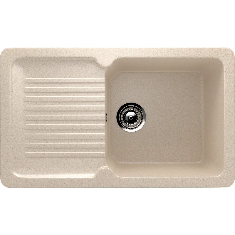 Кухонная мойка Ulgran Classic U-506-328.Характеристики: Цвет: бежевый. Материал: искусственный камень на основе натурального мрамора (80%) и полимерных связующих (20%). Защитное покрытие гелькоут: не имеет микропор, не впитывает загрязнения, устойчив к ультрафиолету, обладает антибактериальными свойствами. Поверхность: матовая. Толщина материала: 15 мм. Размер мойки (ШхВхД): 770х230х500 мм. Размер чаши (ШхВхД): 380х210х415 мм. Размер установочного проема (ШхД): 745х475 мм. Минимальная ширина шкафа: 500 мм. Диаметр слива: 9 см. Форма: прямоугольная. С крылом. Расположение крыла: оборачиваемое. Перелив. Монтаж: врезной (встраиваемая сверху). В комплекте поставки: Мойка. Сливная арматура, гофро-труба. Корзинчатый вентиль. Сифон.