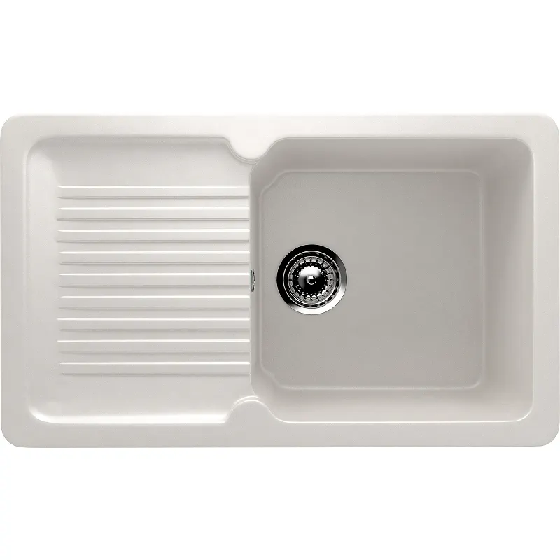 Кухонная мойка Ulgran Classic U-506-341.Характеристики: Цвет: ультра-белый. Материал: искусственный камень на основе натурального мрамора (80%) и полимерных связующих (20%). Защитное покрытие гелькоут: не имеет микропор, не впитывает загрязнения, устойчив к ультрафиолету, обладает антибактериальными свойствами. Поверхность: матовая. Толщина материала: 15 мм. Размер мойки (ШхВхД): 770х220х495 мм. Размер чаши (ШхВхД): 380х210х415 мм. Размер установочного проема (ШхД): 745х470 мм. Минимальная ширина шкафа: 600 мм. Диаметр слива: 9 см. Форма: прямоугольная. С крылом. Расположение крыла: оборачиваемое. Перелив. Монтаж: врезной (встраиваемая сверху). В комплекте поставки: Мойка. Сливная арматура, гофро-труба. Корзинчатый вентиль. Сифон.