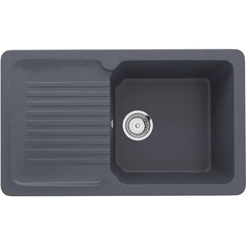 Кухонная мойка Ulgran Classic U-506-343.Характеристики: Цвет: антрацит. Материал: искусственный камень на основе натурального мрамора (80%) и полимерных связующих (20%). Защитное покрытие гелькоут: не имеет микропор, не впитывает загрязнения, устойчив к ультрафиолету, обладает антибактериальными свойствами. Поверхность: матовая. Толщина материала: 15 мм. Размер мойки (ШхВхД): 770х220х495 мм. Размер чаши (ШхВхД): 380х210х415 мм. Размер установочного проема (ШхД): 745х470 мм. Минимальная ширина шкафа: 600 мм. Диаметр слива: 9 см. Форма: прямоугольная. С крылом. Расположение крыла: оборачиваемое. Перелив. Монтаж: врезной (встраиваемая сверху). В комплекте поставки: Мойка. Сливная арматура, гофро-труба. Корзинчатый вентиль. Сифон.