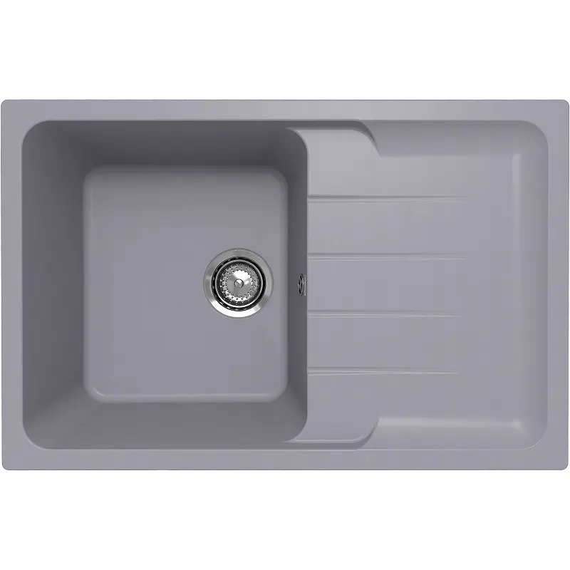 Кухонная мойка Ulgran Quartz Gerda 780-05.Кухонная мойка Ulgran Quartz Gerda 780 - это практичная односекционная реверсивная прямоугольная модель с глубокой чашей 200 мм и большим крылом, изготовленная на современном автоматизированном оборудовании из высококачественных кварцевых композитов по инжекционной технологии (литье под давлением).Кварцевый композит является поистине инновационным материалом в производстве кухонных моек! Он сочетает в себе такие неоспоримые преимущества как повышенная влагостойкость и термостойкость, возможность придать мойке при изготовлении практичный и функциональный дизайн, увеличенное сопротивление внешнему износу, снижение уровня шума при падении струи воды, безусловная гигиеничность и простота в уходе, а также сравнительно малый вес при высокой прочности.Мойка является реверсивной, то есть оборачиваемой - крыло можно установить как справа, так и слева. Предусмотрено 2 намеченных отверстия под смеситель и аксессуары (дозатор или клапан-автомат).Мойка устанавливается в кухонный шкаф шириной от 60 см, а наличие просторного крыла сделает работу с данной мойкой еще более удобной и комфортной! Можно складывать чистую посуду, вымытые овощи или хранить кухонные аксессуары на дополнительной рабочей поверхности, а специальная форма крыла будет способствовать отведению стекающей воды в чашу мойки, а также защищать столешницу возле мойки от разбрызгивания воды.В комплектацию входят: сливная арматура серии Элит с гофротрубой, технический паспорт и гарантийный талон.Заводская гарантия составляет 7 лет, а срок службы данной мойки, при соблюдении основных правил ухода за ней, составляет более 20 лет.Характеристики: Цвет: бетон. Материал: искусственный камень (кварцевый композит). Размер мойки (ШхВхД): 780х220х510 мм. Размер чаши (ШхВхД): 3955х200х450 мм. Глубина чаши: 200 мм. Установочный проем: 755х485 мм. Минимальная база для изделия: 600 мм. Расположение крыла: оборачиваемая. Намеченных отверстий под смеситель: 2. Диаметр слива: 90 мм. Перелив. Форма: прямоугольная. Монтаж: врезной (встраиваемая сверху). В комплекте поставки: Кухонная мойка. Сливная арматура с гофротрубой. Технический паспорт и гарантийный талон.
